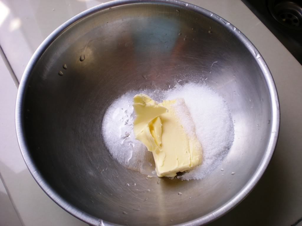 5. 将牛油和糖打至松软, 加入鸡蛋打匀. 加入面粉和咖啡, 搅拌至均匀.