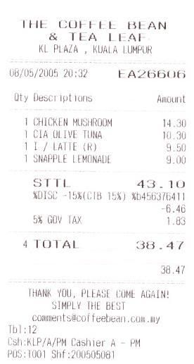 还有,上次忘记说:在Coffeebean只要通过Citibank信用卡付款,就可以获得15%折扣...