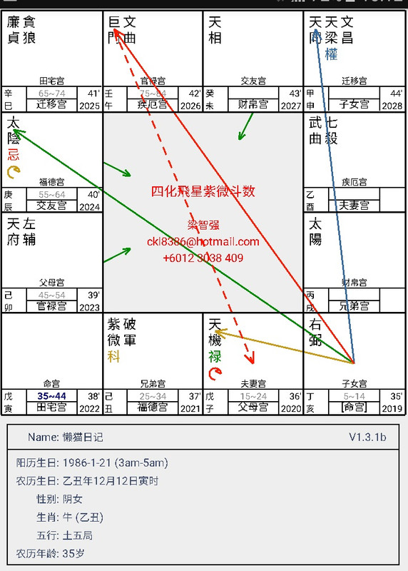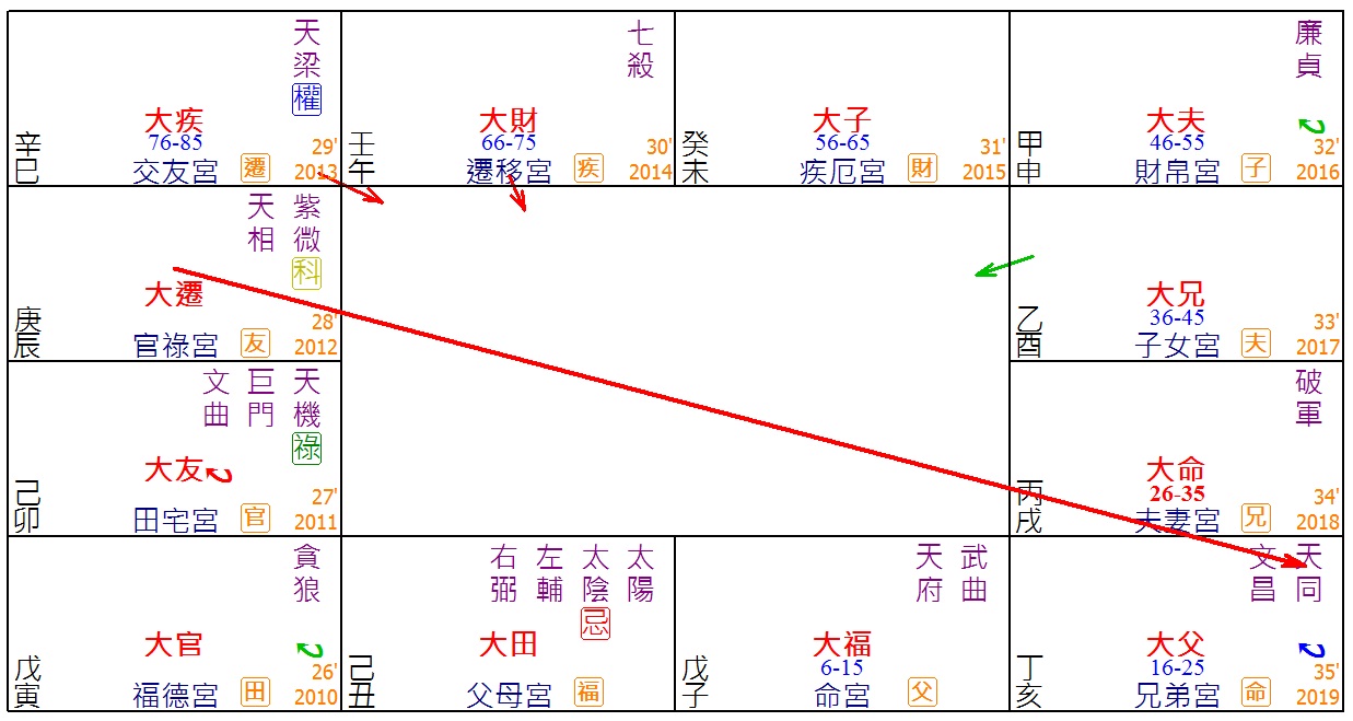 由于大家过去一直以来都有保持联络,我们见面都是在追踪命盘的事件,就在今年2019年开始,总发现命主一直很频密的上怡保,嫌少赴约,就觉得有点不妥,便询问对方为何近期去怡保去得那么频密,这时,对方才腼腆得回复说,他在那边寻找他的幸福,小弟一听,马上询问他是否有了女友,这时他才承认已有心上人了。