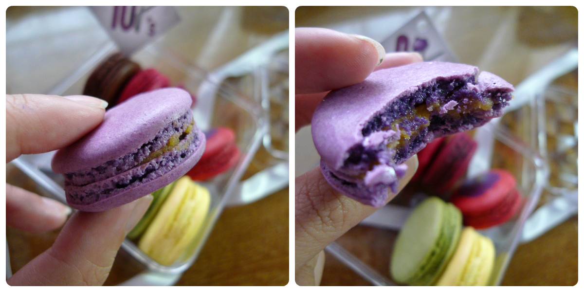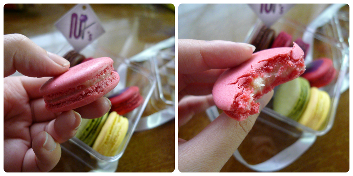不是蛋糕的口感,其实那种口感就是,外层微笑脆,中绵密粘牙,内陷实密的口感,但不是每一家的马卡龙都如此,很多都是挂羊头卖狗肉,不是真正的马卡龙。想吃好的,最好吃法国餐馆Nathalie's Gourmet Studio卖的马卡龙,那是由法国厨师制作的独门秘方马卡龙 |