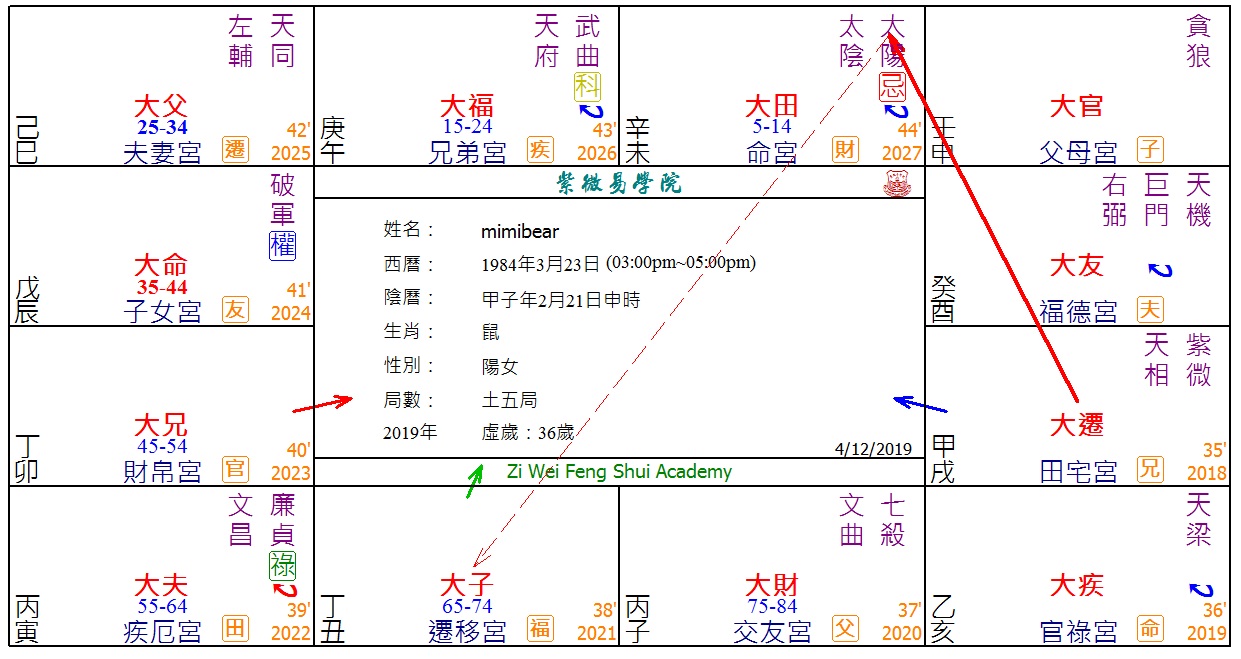 阁下目前36岁,大限迁移落在戌位,35-44岁这10年不适宜出远门、离乡背井、当然也包括移民,特别是2018、2024、2027,这里只是强调阁下不适合移民,并不是说不能移民,只是说移民之后,一切并不是您要的生活。