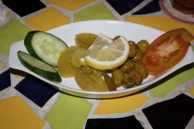感覺上中東菜都有酸酸鹹鹹的小菜,還有很多的麵包