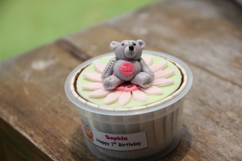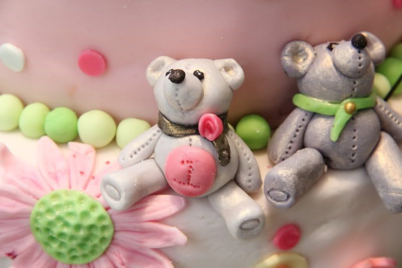 翻糖杯子蛋糕-泰迪熊花仙子杯子蛋糕和两层的熊熊主题蛋糕