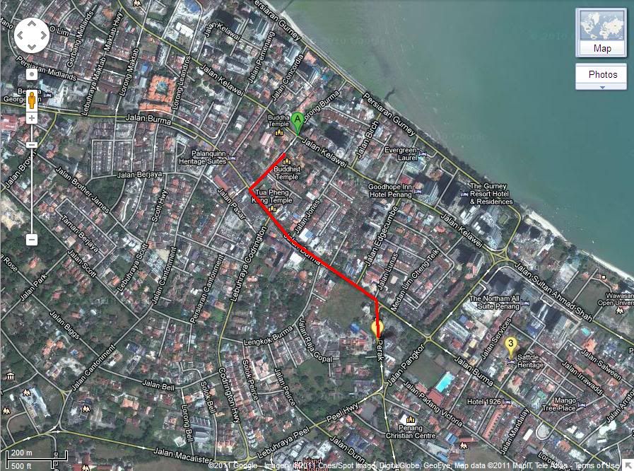 3)地图上显示Dhammikarama Burmese Buddhist Temple对面有一间泰国庙(Wat Chayamangkalaram),