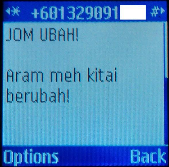 各位,昨晚我收到的是 JOM UBAH! ARAM MEH KITAI BERUBAH! YES!............... 等等。。。 没说明 ... 婉晶 发表于 7-4-2011 03:14 PM