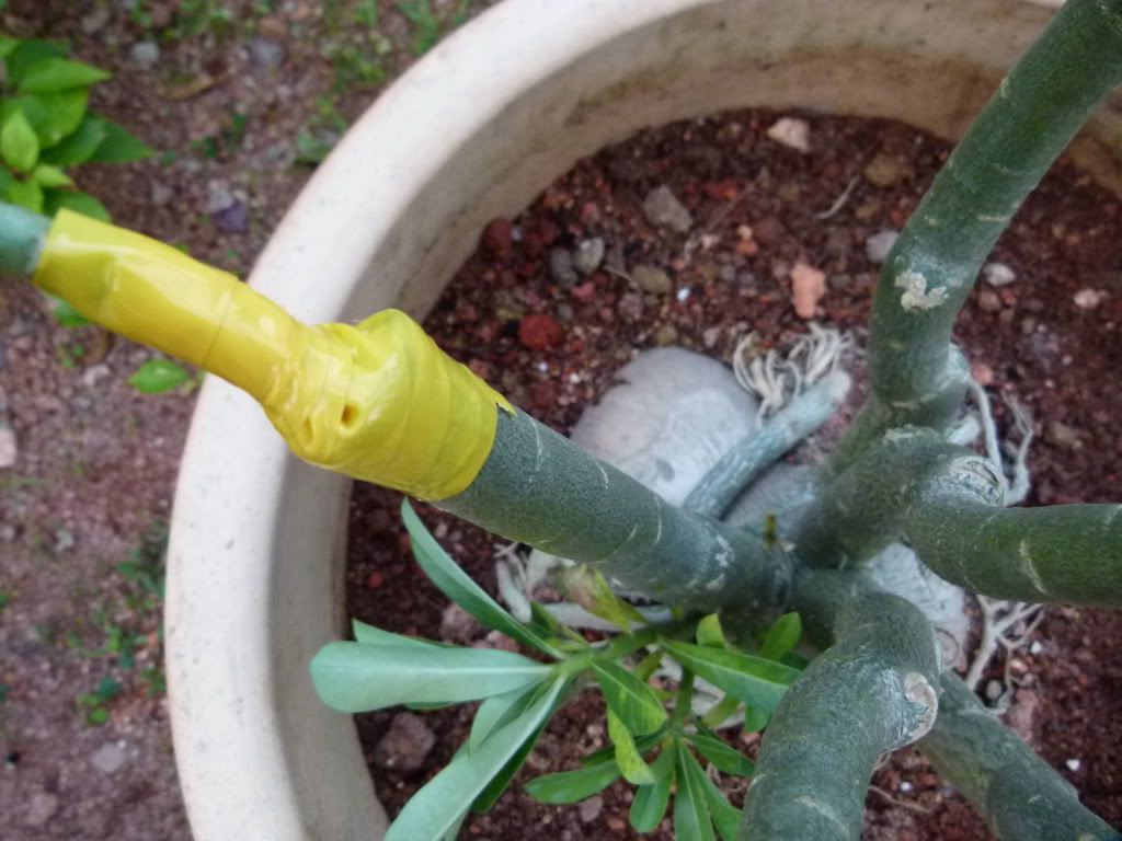 不过树枝有垂下迹象!我把最垂下的给剪掉,然后接两层富贵花,看看有没有进展。