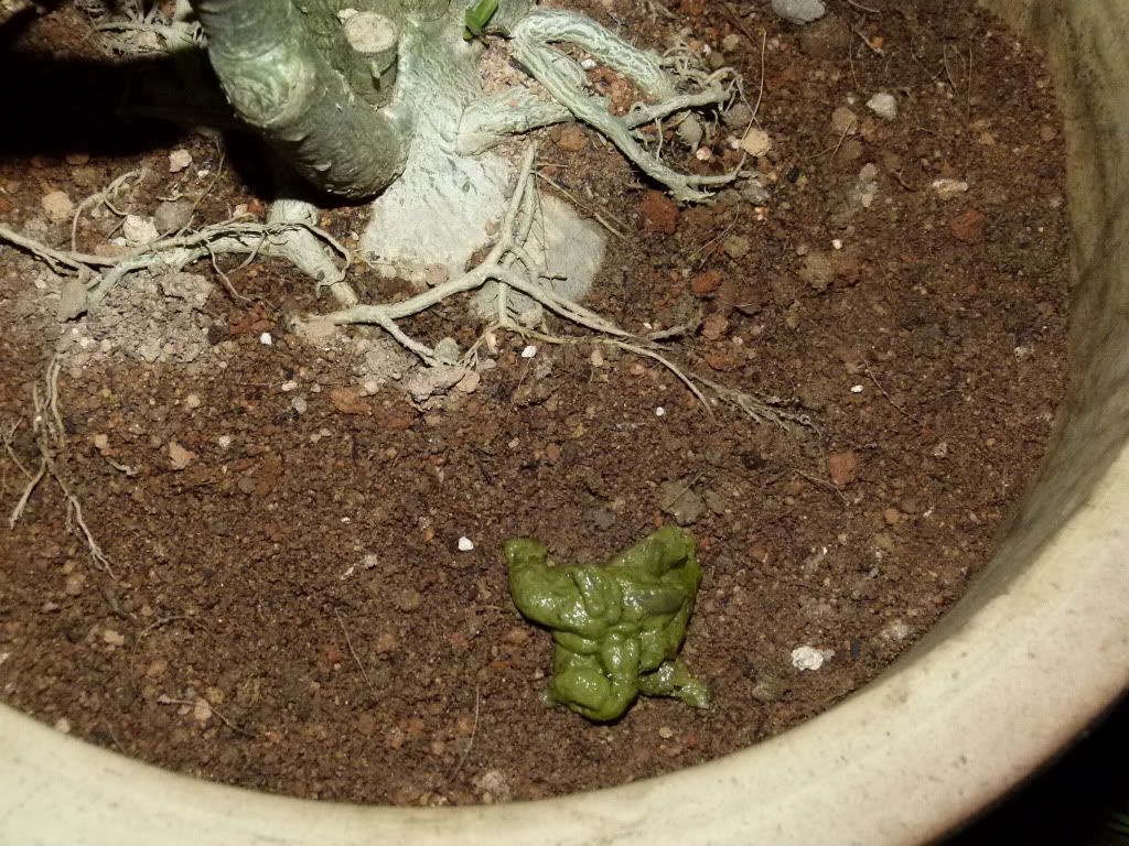 我已把大便拿掉了,不过之前的当肥料了,找不到在那里了。 希望我的小富没事。 |