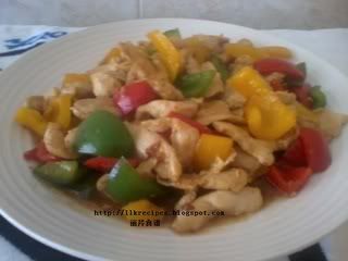 加入鸡肉片,下调味料,加点少许的水,待滚即可盛起