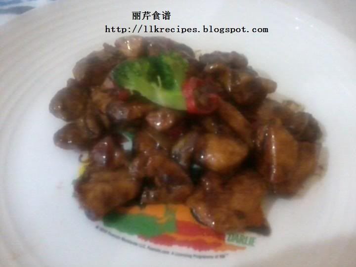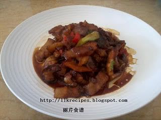 大葱,青豆,酱汁煮至浓稠即可。 |