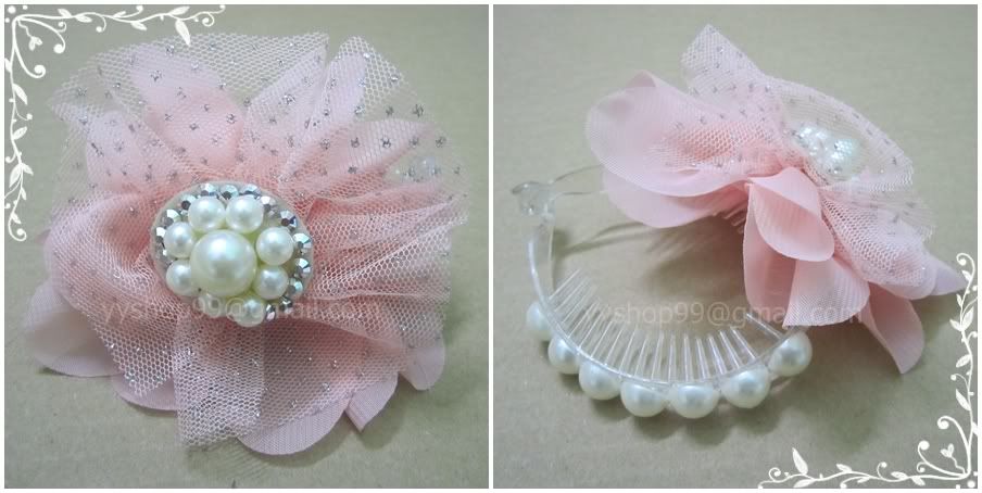 Round Hair Clip- Pink 粉红花珍珠圆形发夹 RM10