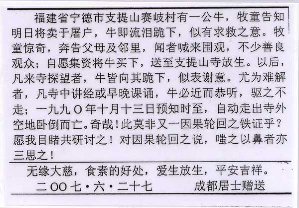 原来牛真的很有灵性,会知道自己将要被杀,如果有人救了它还会跪下来道谢。。。 |