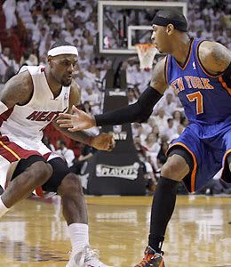 热火球星詹姆斯拿到32分4篮板3助攻4抢断,韦德19分3助攻,波什9分6篮板,巴蒂尔8分6篮板,钱莫斯11分9助攻。尼克斯球星安东尼15投仅3中拿到11分10篮板3助攻,小斯也仅有9分5栏版,戴维斯拿到10分入账,替补出战的J.R.-史密斯拿到17分;香珀特在第三节中段由于膝盖受伤离场;钱德勒在第三节末段被吹恶意犯规,他本场一分未得仅拿到3个篮板和2个抢断,并且有7次犯规。
