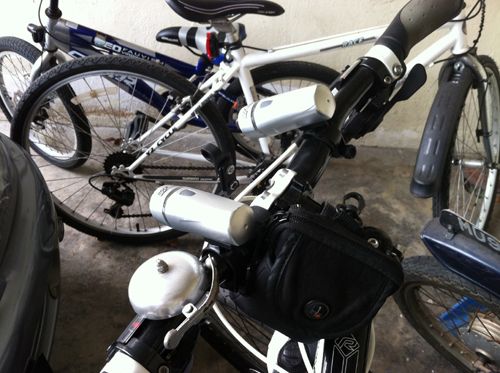 如果只有一盏灯,装在头盔上会比装在脚车丄好。如果有两个,就车一个,头盔一个。 |