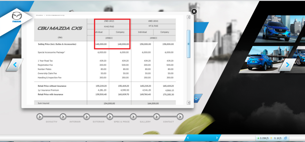 mazda官网,就算是加了保险2wd才RM154K , 4WD RM164K