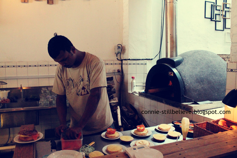 我们也点了百吉饼。店里的百吉饼只有五种哦: 奶油乳酪 (RM5), 奶油乳酪和烟熏三文鱼 (RM10), 培根和鸡蛋的 (RM10), 火鸡火腿和酸果蔓调味汁的 (RM10), 还有咸牛肉的 (RM10)。 我们只点了奶油乳酪的百吉饼,比较单调,但单调的很好吃,饼皮很香。下次我要来个培根和鸡蛋的,肯定很赞。