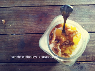 店里的员工们的服务态度也很好,很亲切。酸奶酪 (yogurt)的选择只有四种:菠萝蜜和椰糖,奇异果和蜜糖,芒果和胡桃 (walnut),还有胡桃和葡萄干。每种马币十零吉 RM10。我们点了芒果和胡桃的,很浓厚 (第一次吃到那么厚的酸奶酪)但不会太酸。第一口还真的有点不能接受 (因为我没有很喜欢吃酸奶酪),但吃着吃着慢慢爱上了,配着芒果和胡桃,很香。