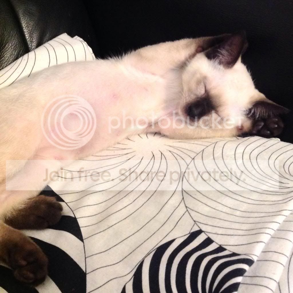 那天本来我要去打第二针,那里知道他们检查到我的猫有贫血和发烧(40度,正常37度),他们还替它检查血液,发现是贫血,就给了我猫药(吃16天),并当场替它打了4针,全部收费才rm72 (验血,四针+16天的药),然后告诉我多两星期后才去给他们检查多一次,没问题了才可以进行第二次预防针.