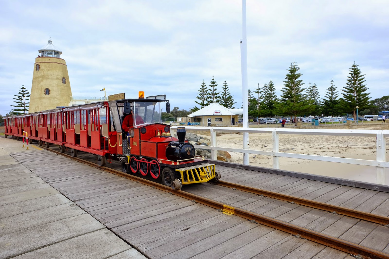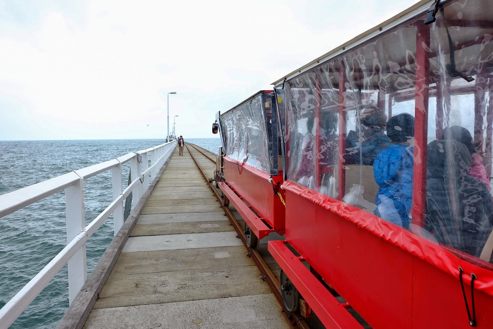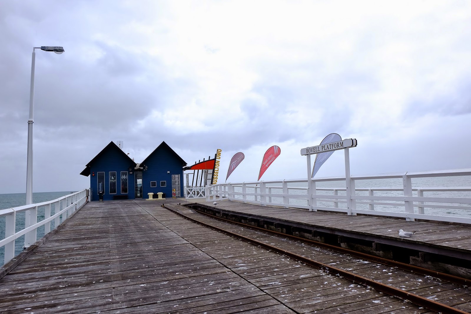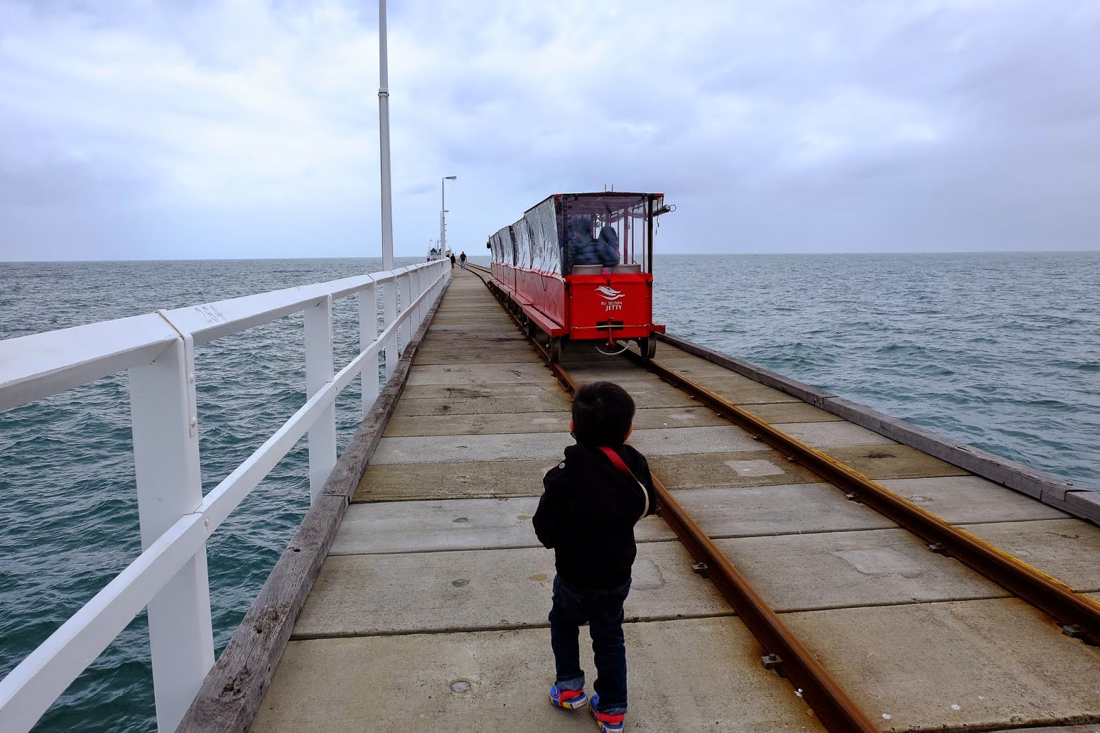 Buselton Jetty,之前没有时间去所以会Perth city 时才去参观。 Buselton Jetty是我指定必去的景点之一。很特别吗?也没有,但我看了一下很美的Buselton Jetty照片,所以很想去看看。 这里有1.8公里长的走道,你可以买入门票而已,也可以买电动火车的票。 我们决定走路,省钱又可以欣赏风景。今天这里虽然没有蓝天白云,但还很凉爽。 听隔壁单位的邻居说, Buselton码头昨天关闭,因为大风大雨。