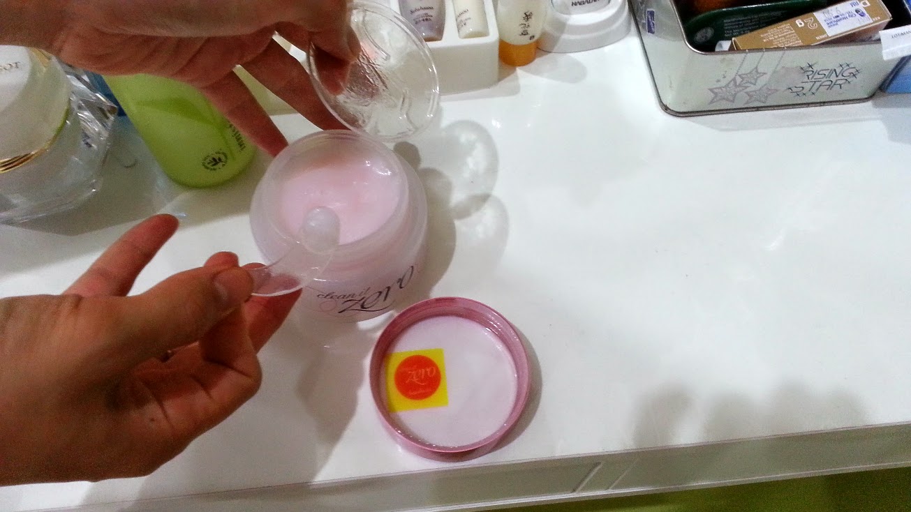 忽略我的一身造型,嘻嘻,阿祖麻~这款卸妆膏是猪油状的,一遇热就会融化,马来西亚太热了,所以货送到我家,我打开里面的保护内盖已经有点油,不过里面还是凝固的猪油膏状。