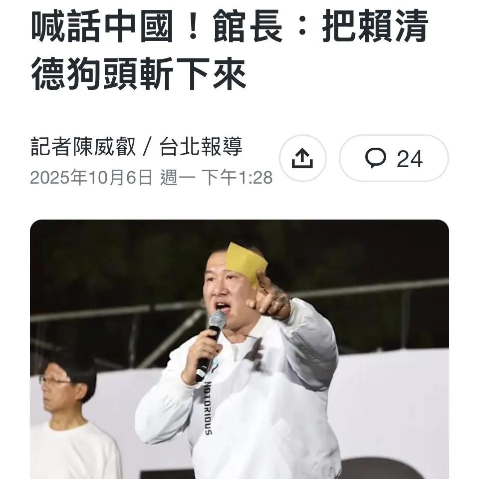 然后馆长是呼吁赶快来, 快行动来斩首赖清德吧, 然后就被曲解成是馆长要砍赖清德的人头! 哼, 不多说了, 欲加之罪, 何患无辞!  |