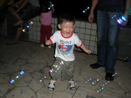 看到勋勋追泡泡那张照片,我就想到宇泽在牛车水玩泡泡的样子