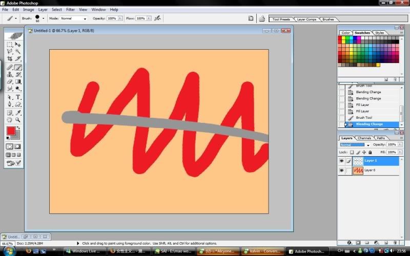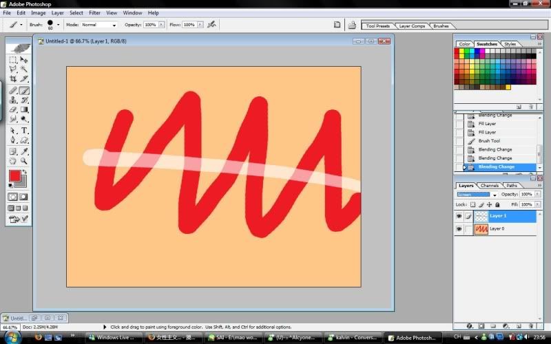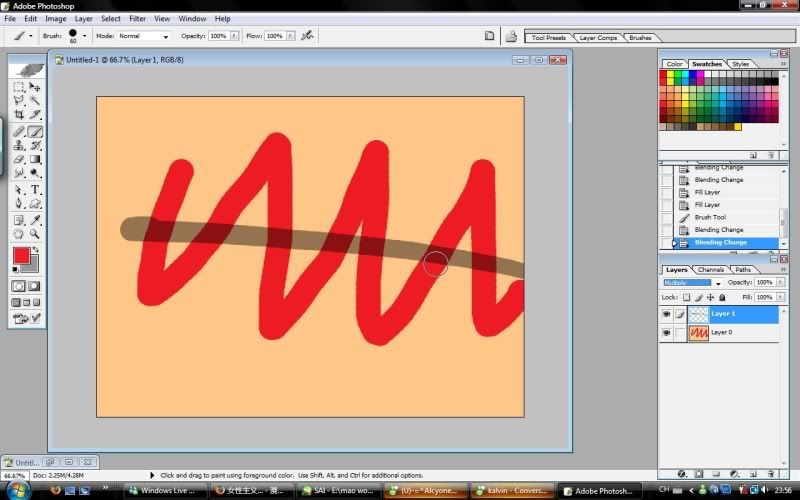 至于你說在multiply狀態的圖層上好顏色的部分,再上會變深的話,那是不可能的(顏色都在同一個圖層的話)。