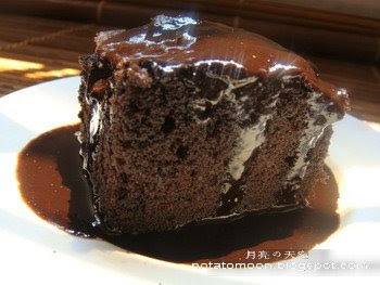 蛋糕烤好后,切片然后淋上材料(C)巧克力浆~完成~