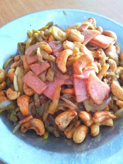 煮法:放适量油下锅把腰豆用小小火炒至金黄色后起锅先,然后把蒜米和火腿下锅煎至熟和香再把榨菜下锅一起煎炒至火候够才把刚才的腰豆和耗油下锅再炒至均匀就可以上锅了,不需炒太久。