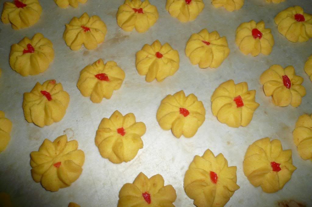 这个饼很容易做,要有pipeping bag 和一个圆形的nozzlej就比较容易,没nozzle也可看你的如何按出粉团。 |