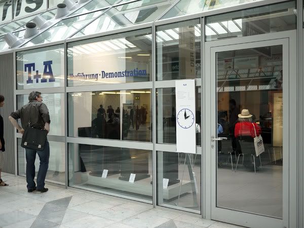 今年的德国high end展刚好是30周年纪念,来参展及观看的人数也很多,比往年还多。参展的商家大约超过300个,来自二十多过个国家,展览里的试听室很多间,而且有些还设有试听及讲解时间。这德国慕尼黑音响算是欧洲最大的音响展,所以很多商家都在这时候各自推出自己最新科技新产品。因为展览厅太大,很多听室我们都没有去。我们去的那一天是第一天,就是给trade visitors的,门票是欧元30,不过可以连续三天看,我老公是没兴趣第二天再驾车来看。本来另一位朋友是要早上10点看的,我老公说那么早去做么,还不是一大堆人挤进去。所以我们是大概早上十一点半到,一直看到5点才回家,间中还有吃东西。其实如果拍照的话,最好是相机有wideangle lens会比较好,因为有些房间很小,很难把整个音响设备及房间都拍出来,而且很多房间都把灯光调到有些暗,我又不敢用flash,免得被说没礼貌。