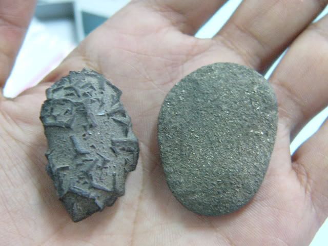 這是在美國堪薩斯州所發現的,本質是一種硫化鐵,也就是黃鐵礦(Pyrite)、白鐵礦(Marcasite)、鈀金(Palladium)的共同混合體。長相非常奇怪,有光滑平整的,被稱為「母石」;有突起、尖銳面的,被稱為「公石」,一向以來都是成對的被包裝、販售。硬度約6-6.5, 比重約5.2, 香港有人稱為「陰陽石」、「鴛鴦石」等的。