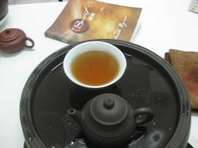 昨晚茶聚喝了很多茶。。谢T版的老六堡等。。TianLoong兄的大红袍。。TPYONG兄的红茶(另骗了2泡回家自己玩)
