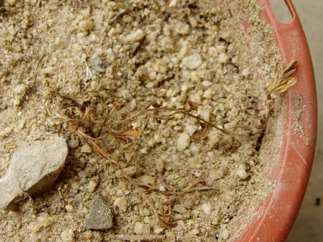 不用太难过,我也有同样遭遇,在金马伦买的齿叶薰衣草非常小心的种了一个多月,也是因为急想他快高给他晒太阳时没留意给我那只小狗象猪一样肥的身驱橦倒后,我也是把泥土倒回进去...不适应...然后再换新的泥土~~~他还是不适应~~眼看一片片叶快干,赶紧翦下几个分枝来插支...后来全都干掉!盆中的断枝就是他的主茎