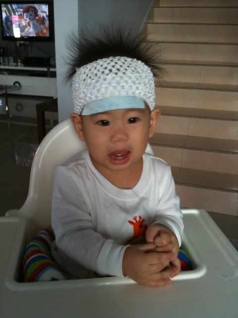 哈哈。。我也是突然间想到用这方法。。那时候正头痛要怎样稳定退热贴,刚好以前有买者头套