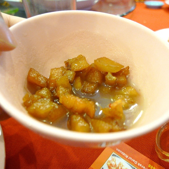 老实讲啊,比起很多我吃过的海南鸡这里不算是最棒的,但也不错吃,搭配起鸡饭团一起吃姑且算是一种特色吧!这里排队不会很久,比起中华茶室的要很多了,若叫我去中华茶室排队我想我是不会了。和记就看你要不要排咯,如果是旅客心态就会觉得既然到了古城没吃鸡饭哩就好象少了什么似的感觉吧!就好象satay celup一样,其实也没什么特别的,但就是当地的一种特色咯 |