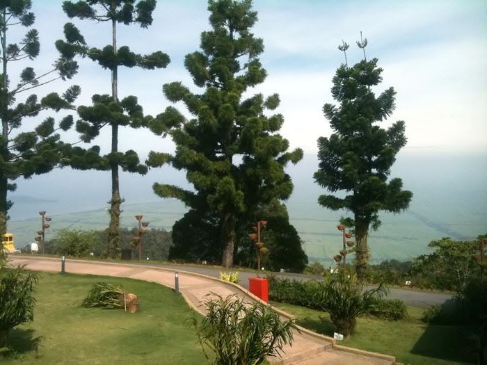 路旁树木都很高很大很多,90%的路程是晒不到太阳的,再加上季候风的关系,风很大很凉很爽,山上风景优美,山脚田野一望无际,美如画。