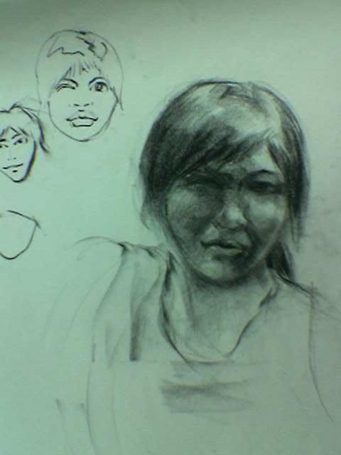 就那天我所說的,人物也好,風景也好,我們能夠的話當然現場進行最好.我們能夠更明確的捕捉到那種感覺,嘉義強調也好,甚麼都好.現場風景更能得到更明確的現場氣氛,那是照著照片畫所不能得到了.人物,當然也是如此,舉個例子,照片捕捉到的是人物整體的完整,你看到的全都是那麼的清晰,可是當你面對一個人物素描模特兒時,再現場的你的眼睛,只能對你觀看的那個點加以清晰化,可是這樣的話就會忽略到整體感...講師說過,如果進行一張畫作的時候,我們用的是局部局部的完成,那麼,出來的成果是不好看,不自然.逐一的看,那是逼真的,但是整體來看,那是不怎麼自然好看的. |