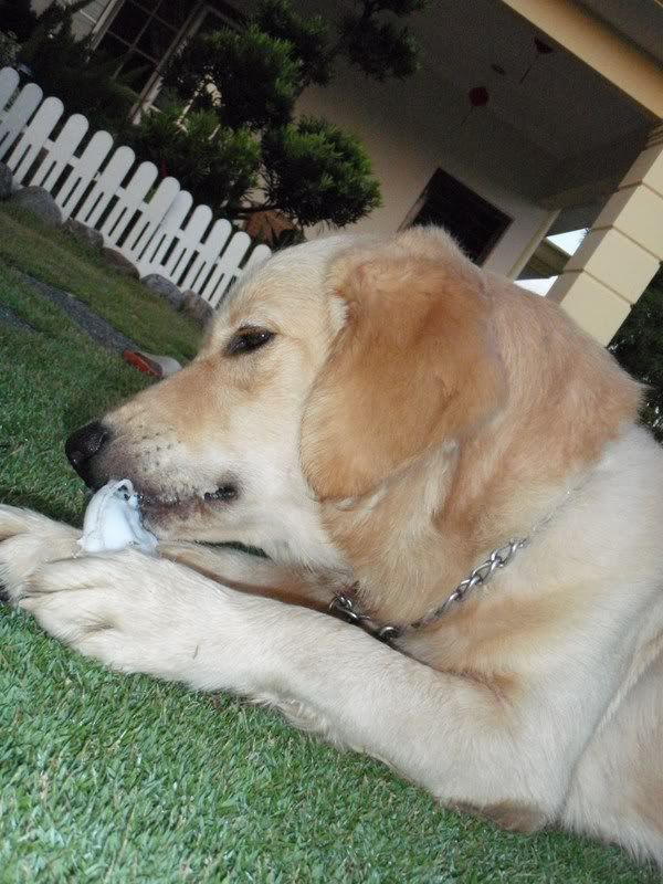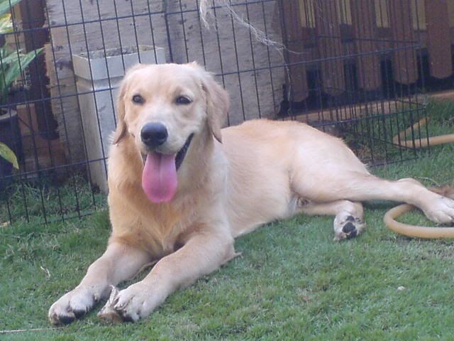 今天和昨天有带JD去对面的公园玩,发现到WAWASAN 1 有很多黄金哦。有一个小弟弟看到JD还回家带了他的黄金BONO(???)来和JD谈谈。。。。。离我家3间的邻居也养了一只大GOLDEN还有另一只狗。本来要带JD去看看不过他们远远看到就在吠了的。看来要等到傍晚了 |