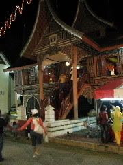 昨晚在那边已经搭好stage,整条巷子都是spotlight,speaker还有celcom的booth。。。