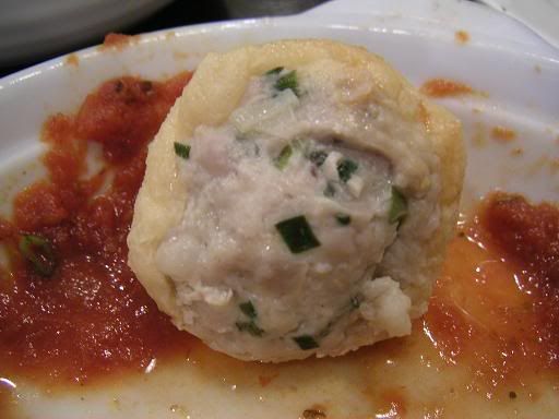 内含猪肉的豆腐,类似福州鱼丸般.