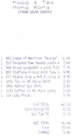 没有帐单,两人份的价钱是 RM32. |