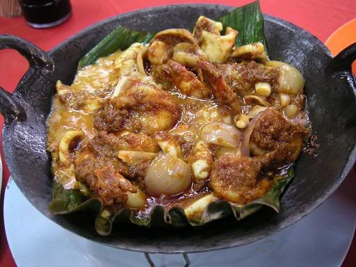大虾以椰酱,葱头,蒜米,咖哩等配上苏冬炮制而成,盛载在一个香蕉叶铺底的小锅子上,让人闻之开胃,食之垂诞欲滴的美味菜式.