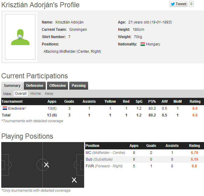 Krisztian Adorjan 生涯有點「高開低走」,u18 聯賽表現尚可,但之後即使係 BR第一季2012/13球季大量使用新人,Krisztian Adorjan依然無法爭到上陣機會。上季較可惜係外借荷甲格寧羅根的外借合約有 buyer opinion,但最後格寧羅根並未使用買斷條款,而今季中前場可謂競爭最激烈既位置,Coutinho, Suso, Lallana,要上位不易。