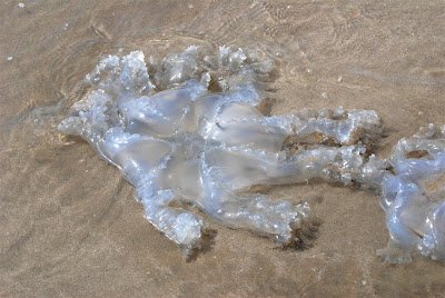 這是水母盛產季節,沙灘上滿佈被沖上岸的水母. the season of jelly fish, many wash ashore by the waves.