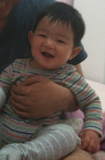 现阶段的恺是充满着精力,好动和好奇心,任何东西他都要摸摸看,动一动他才甘愿。他又很爱爬高爬低的,尤其最爱客厅的咖啡桌,每次都要扶着桌子站起来,然后就开始攻击桌上的东西,晕!!! 他呢,站又不是很稳,没两下就脚软跌下来了,真是每分每秒都要盯着他才行。