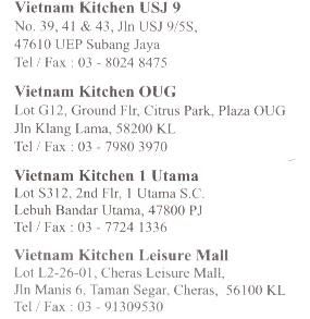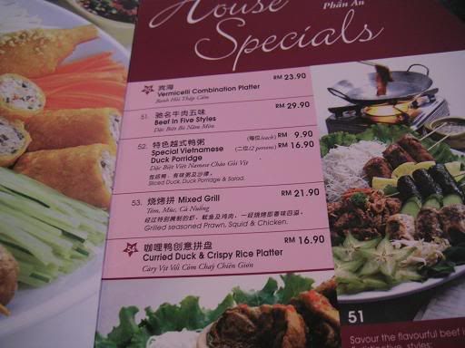 越南餐很适合道地华人的口味,味道适中,不浓不淡,不会出現中餐的油腻感,更不像泰国餐般又酸又辛辣.越南菜的特色是保留原汁原味,而且习惯以鱼露汁做为酱料.虽然本地的越南餐并非跟足道地越南的炮制法,但卻聪明的把越南的饮食技术引进大马,再根据大马人的饮食口味而做出改善,所以你可以看到最近的越南餐馆越开越多.
