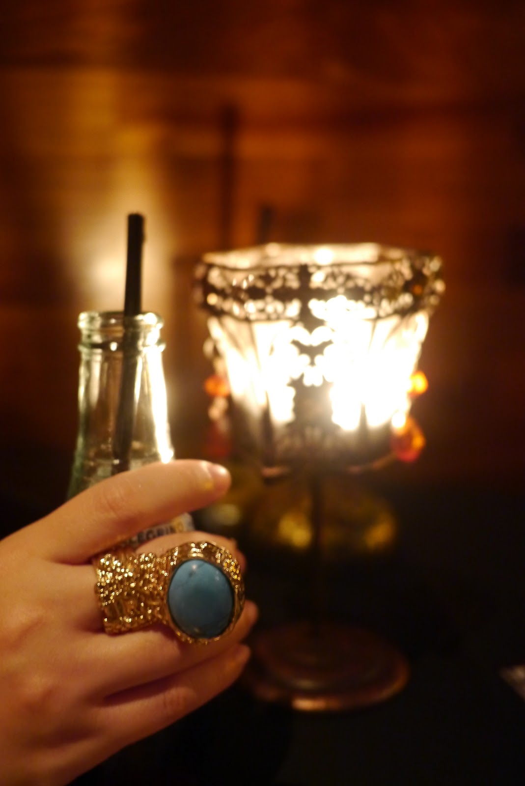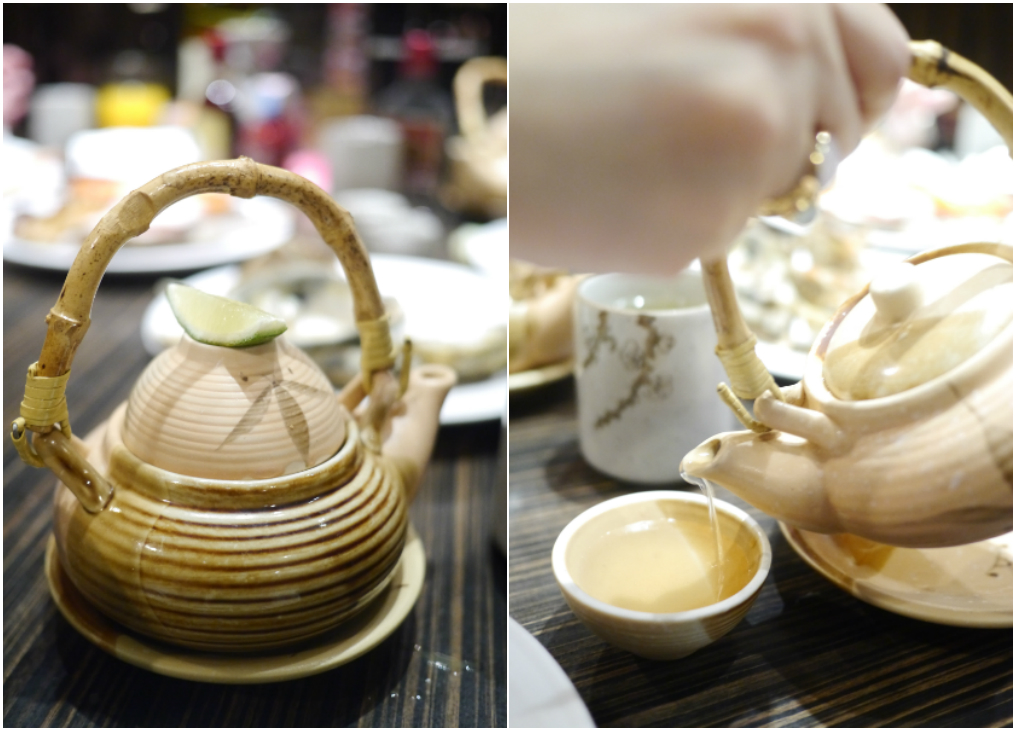 和友人俩人坐在屋后的座位上点了两杯柠檬蜜糖 ...