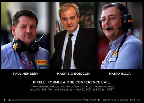 近期,关于F1梅赛德斯车队使用2013款赛车“私测”倍耐力轮胎的消息引起广泛关注和争议。5月31日,倍耐力公司进行公开电话会议,以答问的形式对此事件做出官方澄清。出席会议的是倍耐力研发总监Maurizio Boiocchi、赛事运动总监Paul Hembery与赛事经理Mario Isola。倍耐力在会议中强调:轮胎测试不偏袒任何一支车队,本轮测试只为研发2014赛季轮胎,倍耐力从未要求车队使用2013款赛车。电话会议内容整理如下。