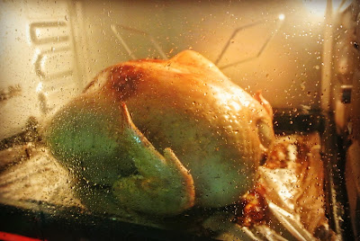 5。把4。均匀地倒在鸡上,送进烤箱里,用220C烤45分钟(鸡胸朝上),把鸡翻个面再继续烤个20分钟至鸡肉全熟即可。