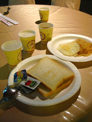 我的早餐(两杯豆奶,两片面包,一碟米粉加蛋)